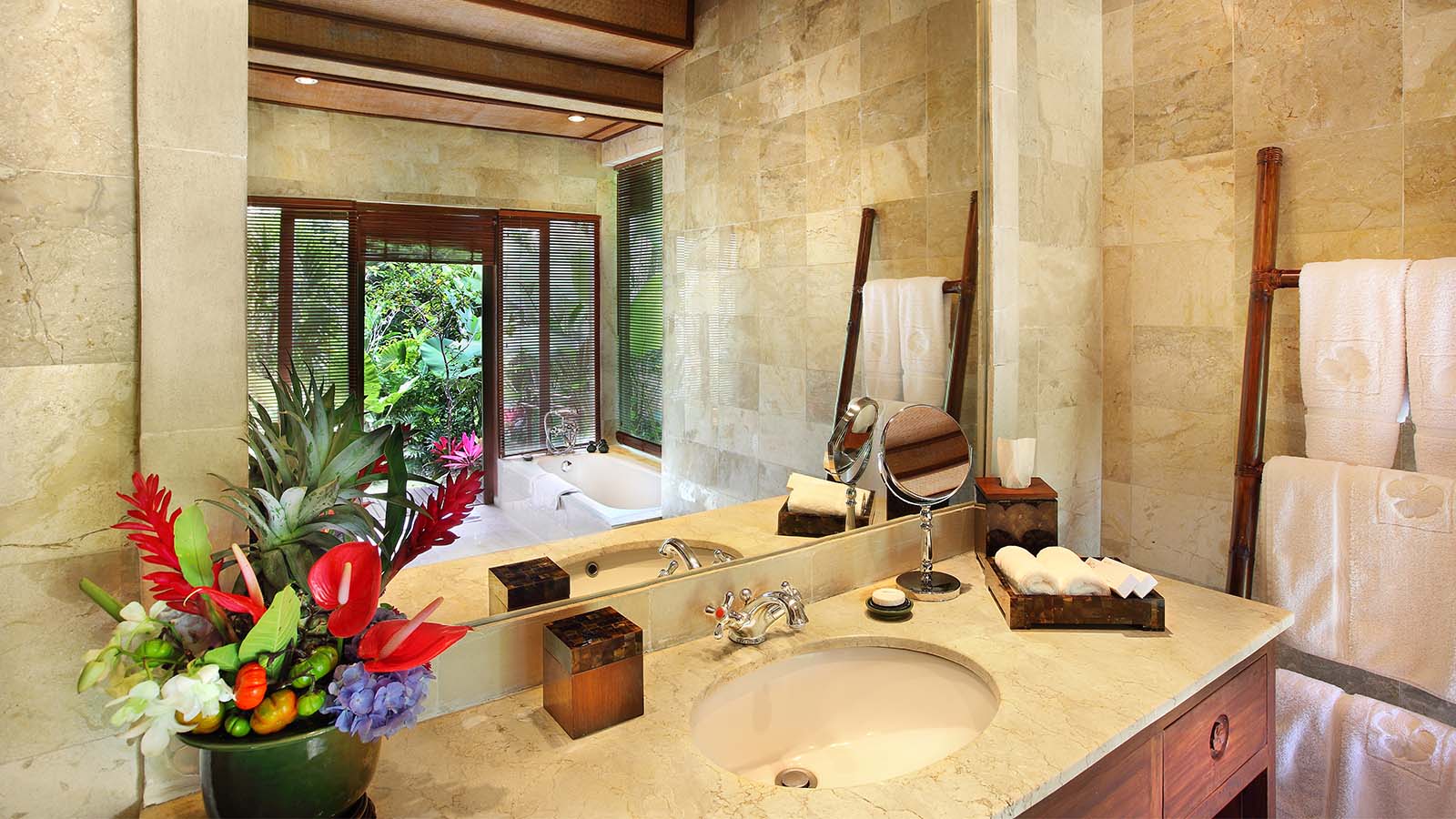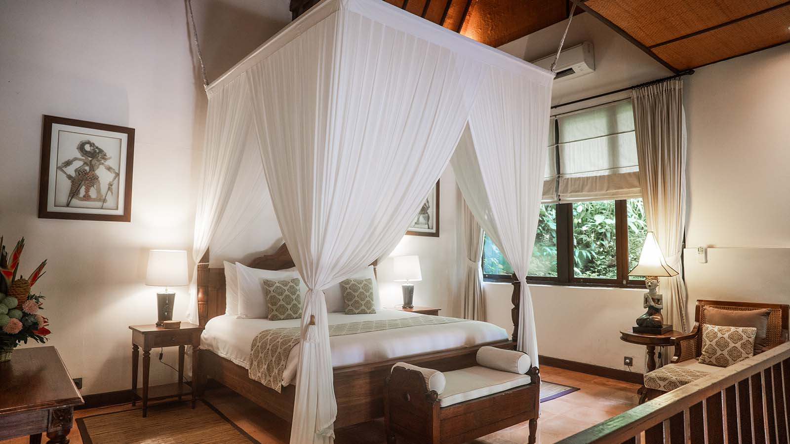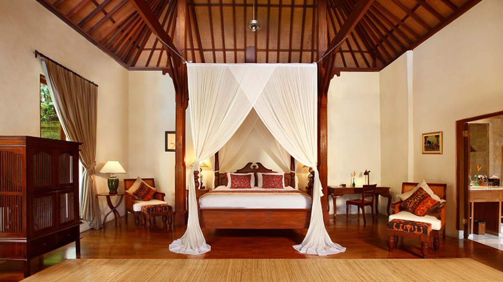 Our one-bedroom pool villas are designed to maximize scenic views while offering privacy and seclusion. Each villa, crafted to meet Ibah's high standards, features spacious living areas, luxurious beds, and magnificent outdoor surroundings. Villas Oleander and Camelia, each with unique designs, include private pools and gardens, large bathrooms with showers and bathtubs, and traditional Balinese decor, ensuring a memorable stay.